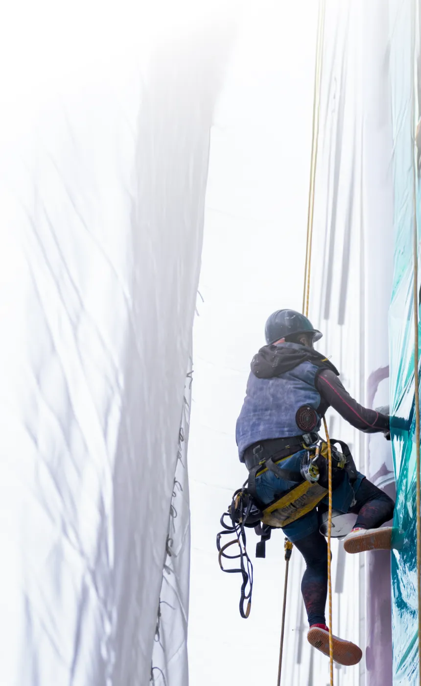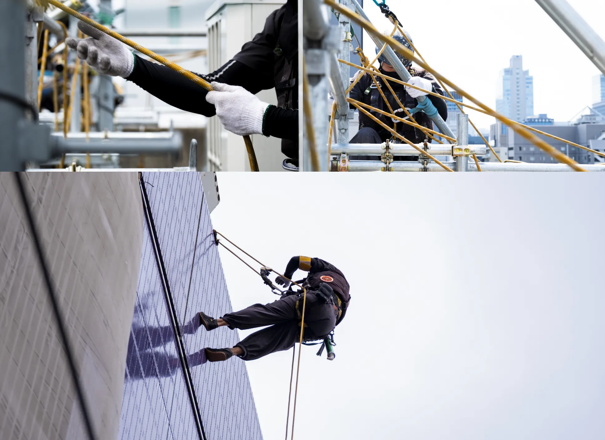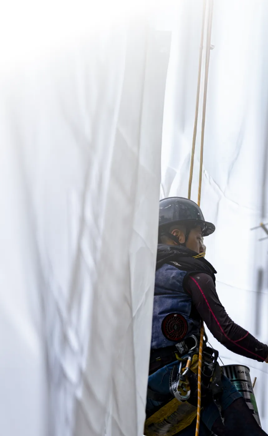 特にロープアクセス作業では、2本以上の独立したロープを使用し、安全確保を徹底しています。