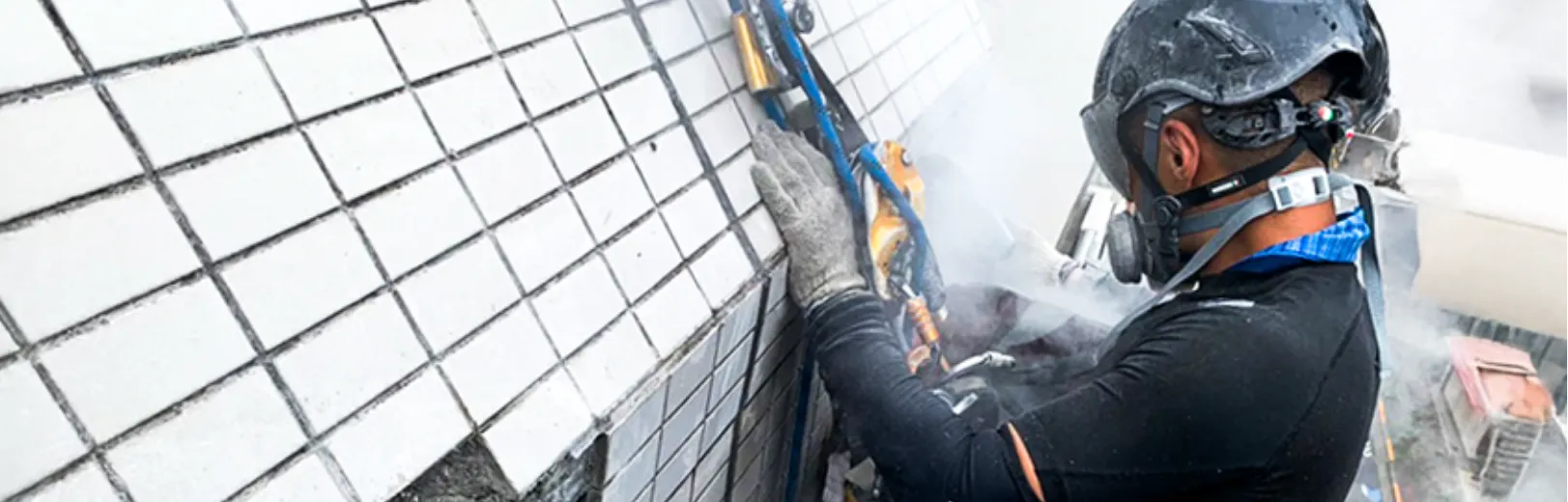 ひび割れ、浮きタイルの貼り替え工事やエポキシ樹脂注入工事、